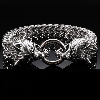 Pulsera de cabeza de lobo dominante de acero inoxidable chapado en oro de comercio exterior europeo y americano, moda exagerada vikinga